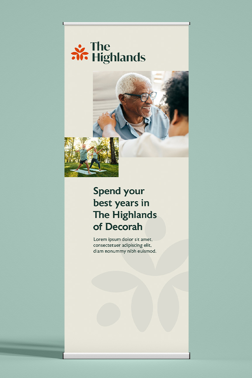 Our strategy: Partner with Aase Haugen leadership to guide a comprehensive nonprofit rebrand, beginning with research and stakeholder alignment. The result was The Highlands, a name inspired by the street and elevated location of the new campus, and one that conveys warmth, dignity and a sense of belonging.