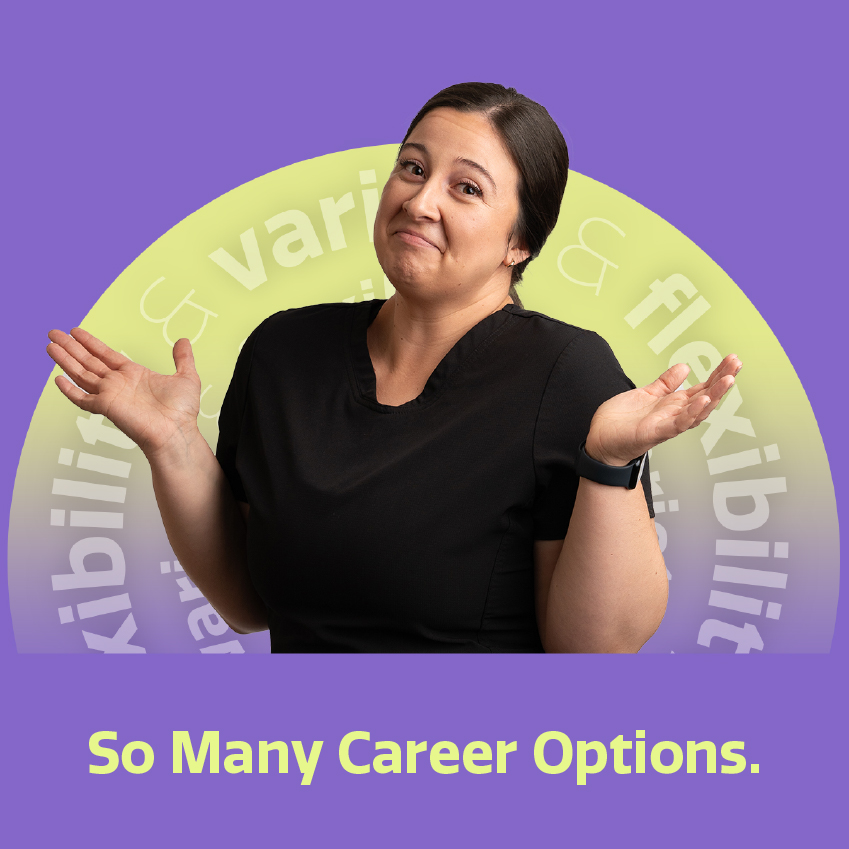 Amperage developed a campaign theme — So Many Options — and set a campaign visual identity using bright, attractive colors, imagery of hospital employees who clearly enjoy their jobs and plenty of video, a popular medium with the age demographic.